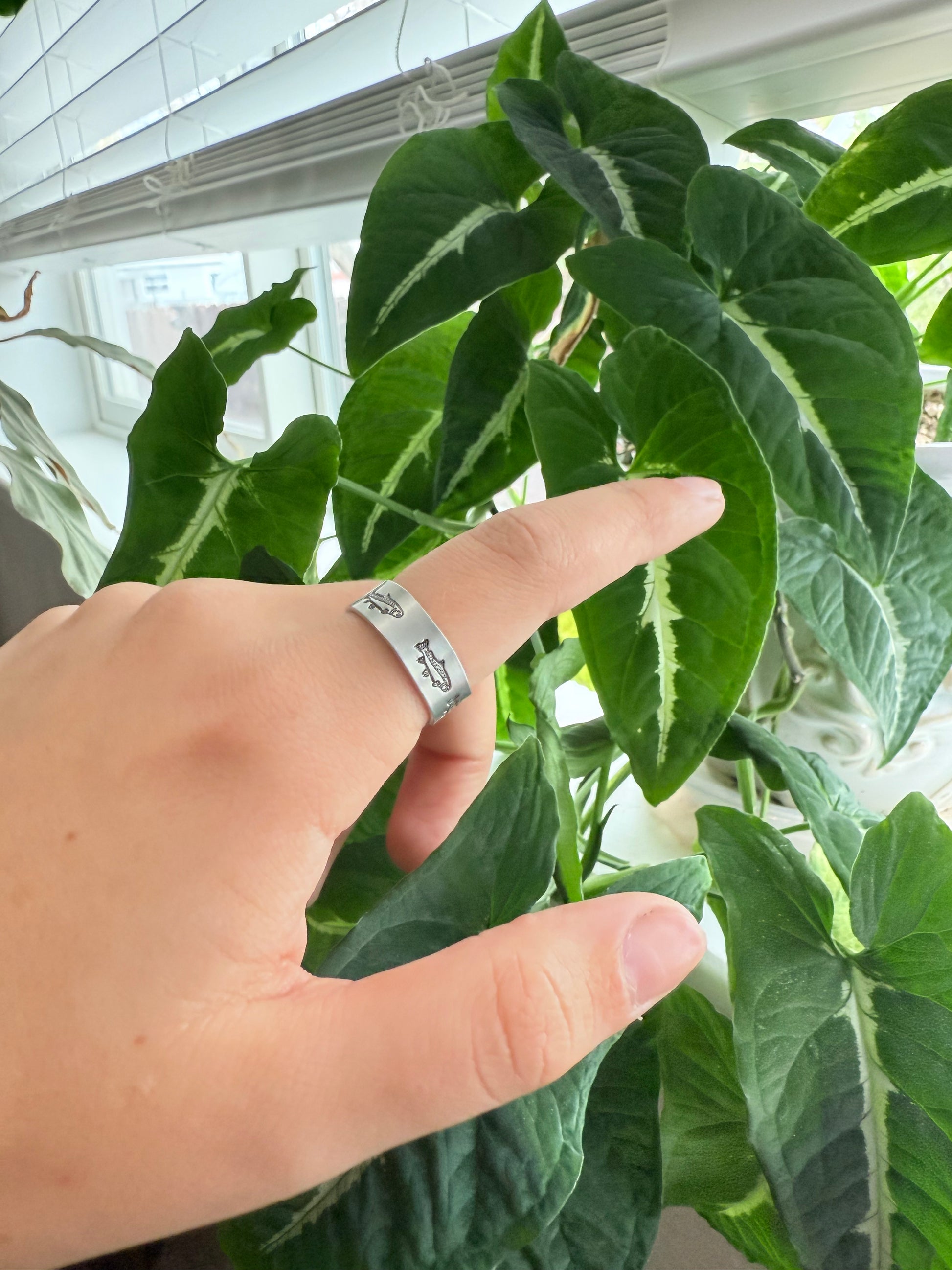 Single band with fish stamped all around the band!