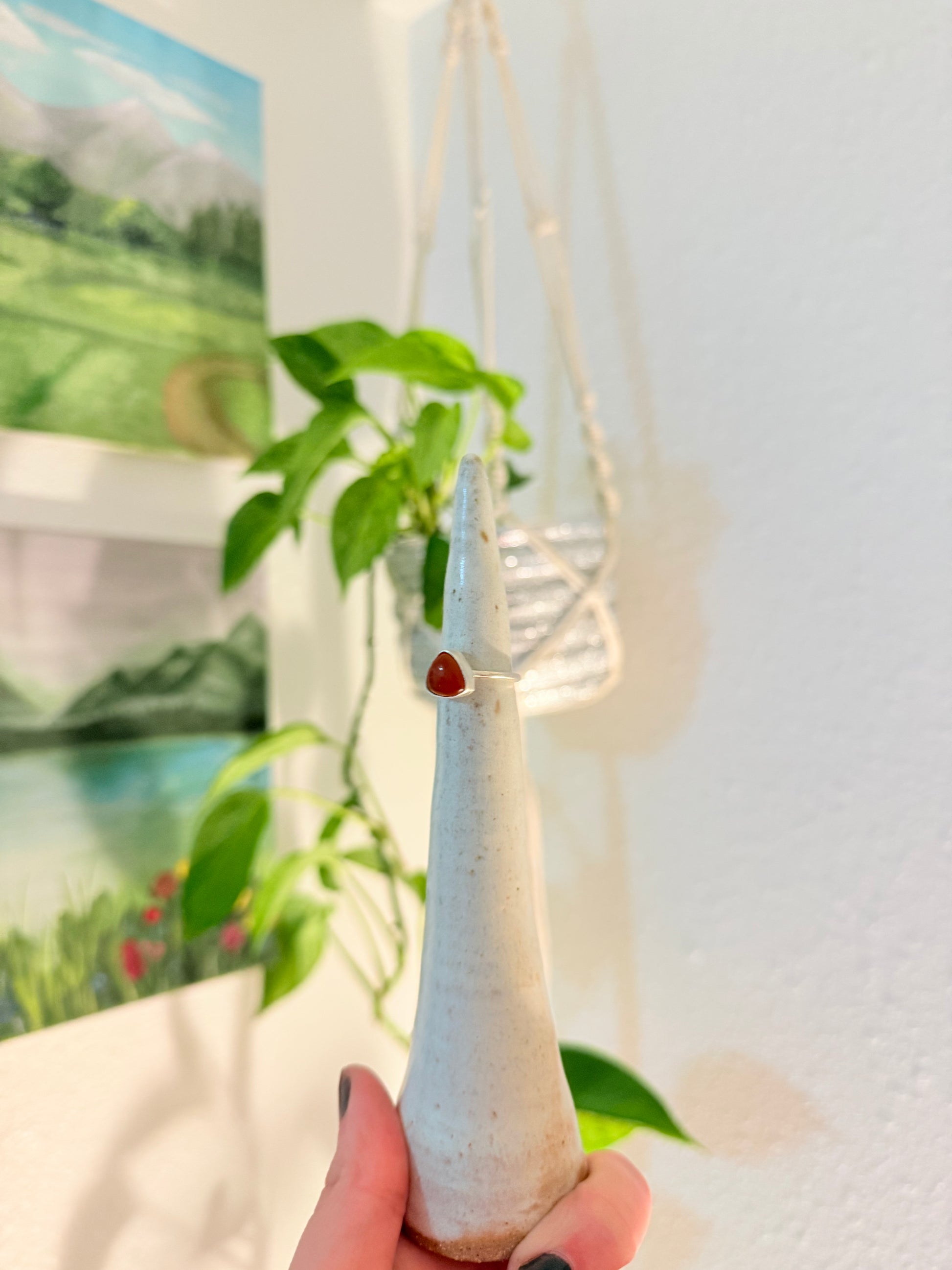 Gorgeous orange carnelian stone set with .925 sterling silver with a plain simple band and bezel! Size 6