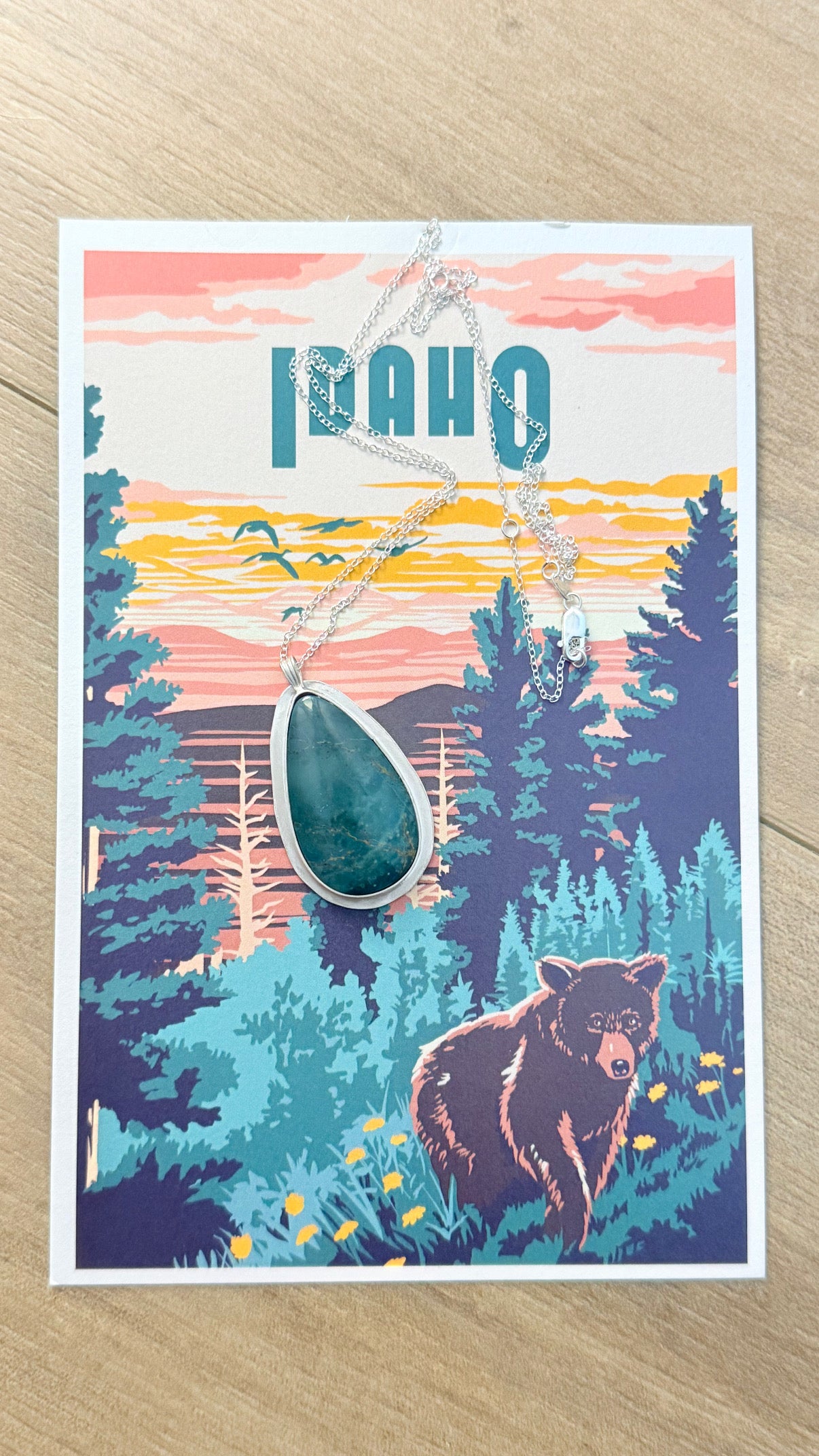 Gorgeous Skaggs Jasper Necklace, with mirrored edging on a adjustable 1mm cable chain!